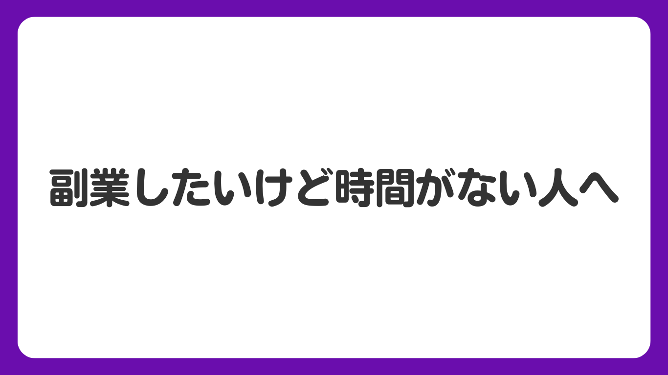 本業や家事育児に追われる中で、副業をやる気持ちはあっても「まとまった時間がない」と諦めてしまう人は少なくありません。